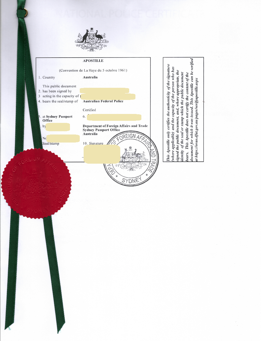 Australia NPC National Police Certificate Apostille