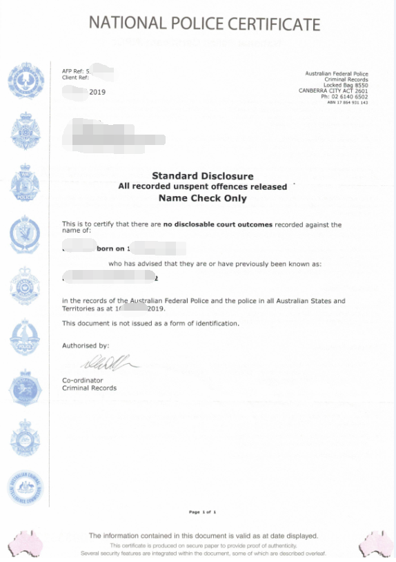 澳洲无犯罪证明National Police Certificate (NPC),国家警察证明 (NPC) 是您在澳大利亚犯罪历史的摘要,有时称为国家警察检查。由Australia Federal Police(AFP)签发。如果您的请求是出于联邦或澳大利亚首都地区的原因,则必须使用AFP。