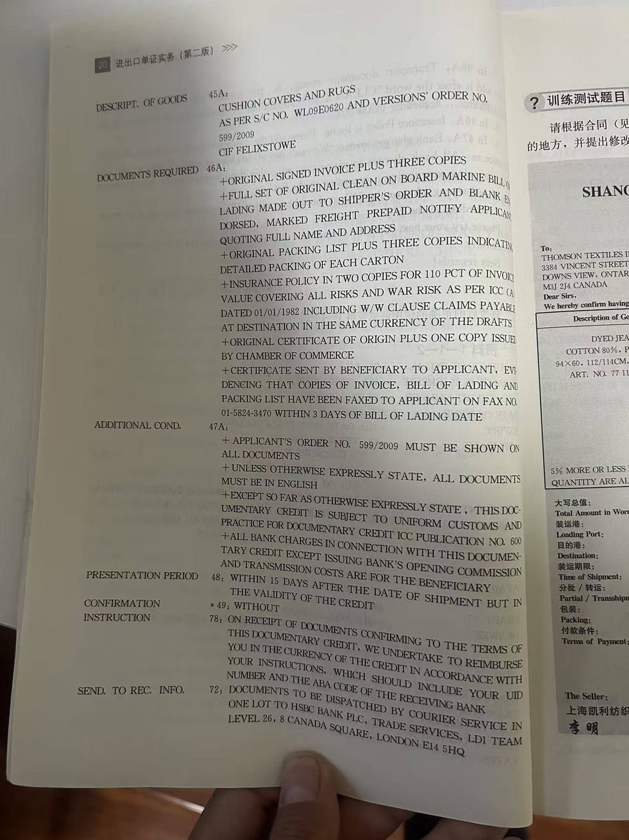 第三,46项和47项会有明确罗列需要什么样的单据,你先看着看你们公司这边能不能搞出来,如果碰到有的单据你们公司做不了那就问下国外或者熟悉信用证的人怎么处理,有个心理准备