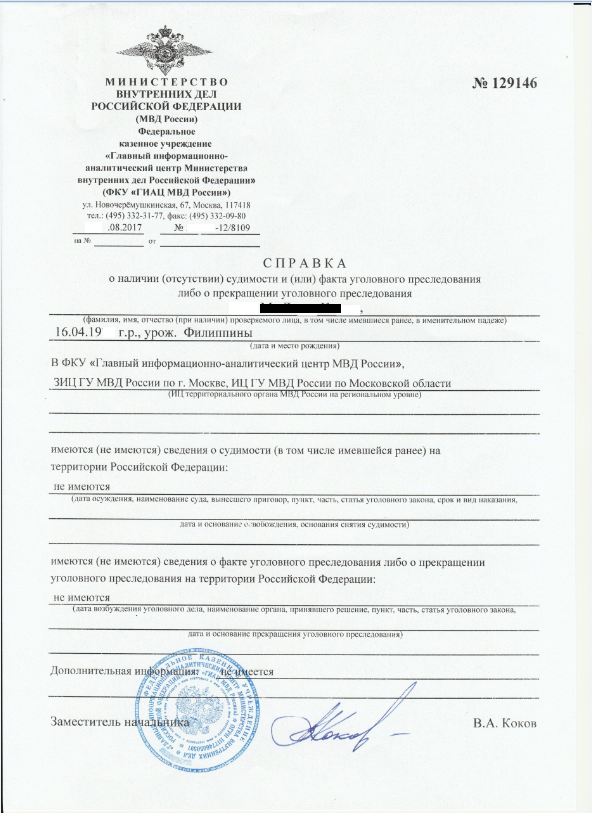 俄罗斯无犯罪证明样式