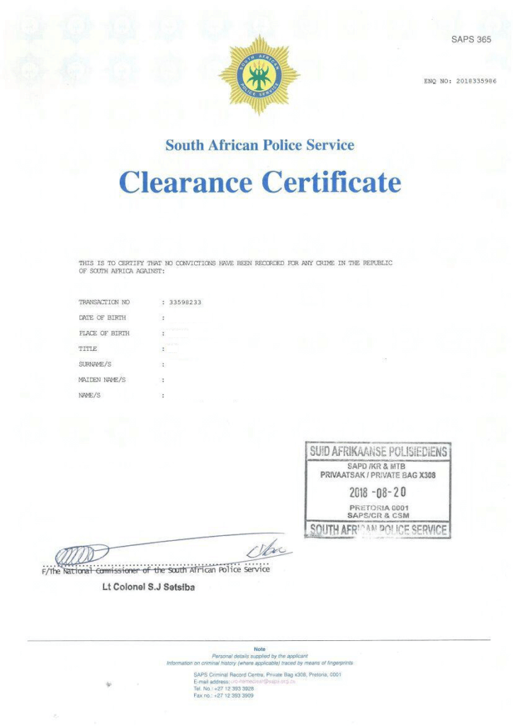 怎样申请南非无犯罪证明和海牙认证/使馆认证